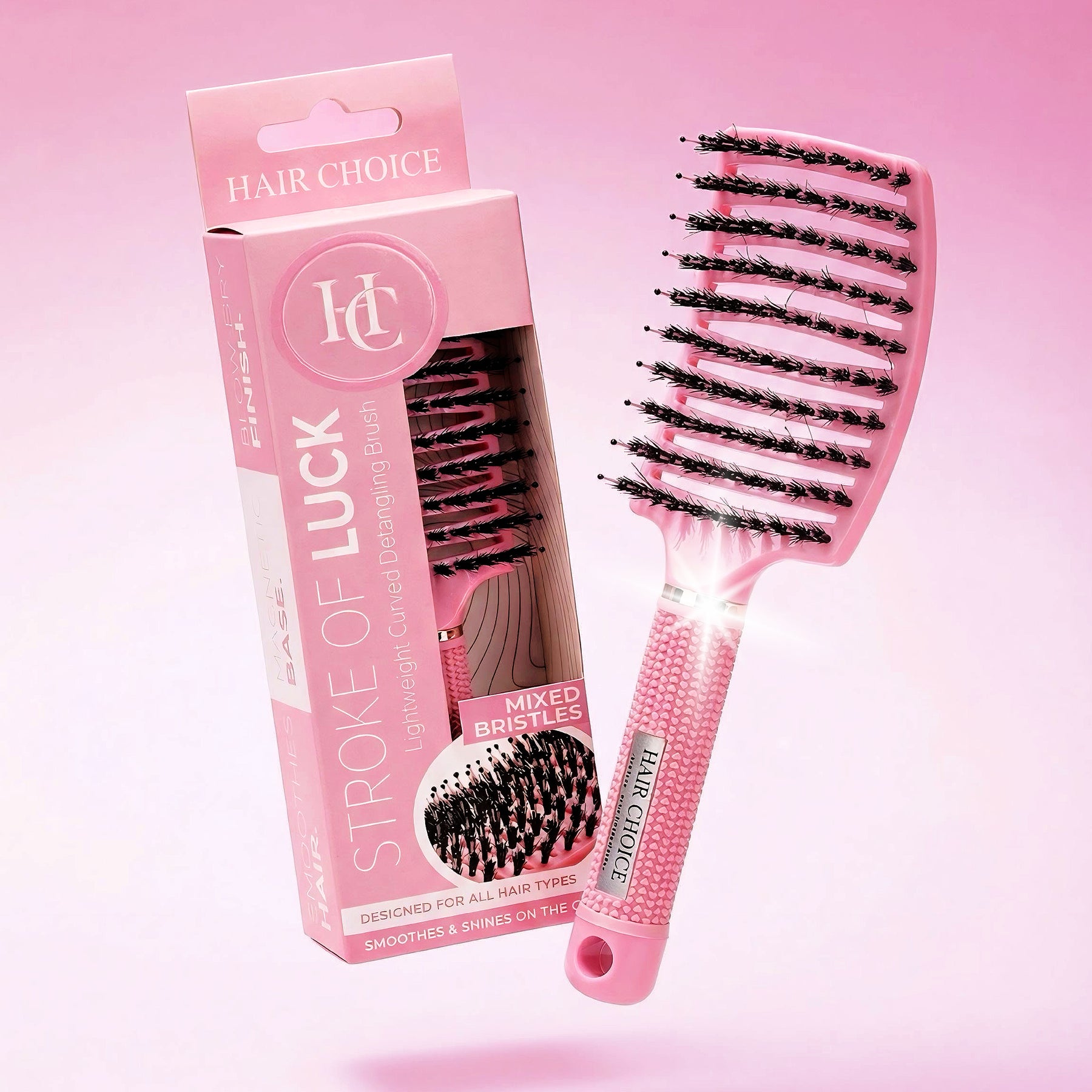 The Stroke of Luck curved mixed bristle brush is the game-changer your styling routine has been waiting for. Created by salon industry experts, this bold brush harnesses dual-bristle technology to transform hair from root to tip with uncompromising precision. It detangles fearlessly whilst safeguarding every strand, delivering silky, salon-quality blow-dries that demand attention. High demand proves what stylists already know—this brush doesn't just work, it dominates.
